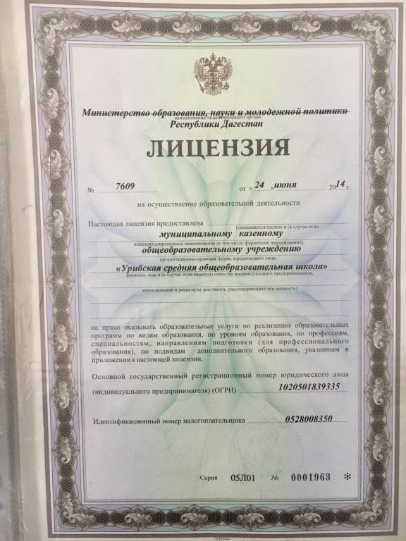 | Полное наименование образовательной организации* | Муниципальное казенное общеобразовательное учреждение "Урибская средняя общеобразовательная школа" |